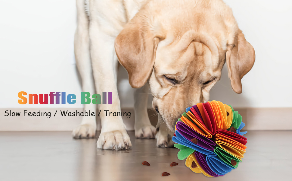 . Snuffle Ball - Snuffle Ball for Dogs, Interactive Dog Toys to Keep Them Busy, Puppy Dog Puzzle Toy with Storage Bag Machine Washable Your dog's nose was meant to hunt, sniff and snuffle!! Top Tip - Snuffling is actually a calming exercise for your dog and it can help them relax if they are stressed or had a stressful event.